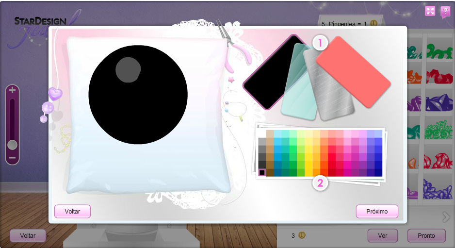 Em seguida, defina o material e cor do brinco, lembre-se que