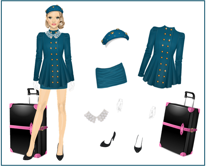 Essa fantasia eu me inspirei em uma amiga muito querida do Stardoll!! Será que vocês adivinham quem é? Achei esse casaco super cara de aeromoça e vocês?